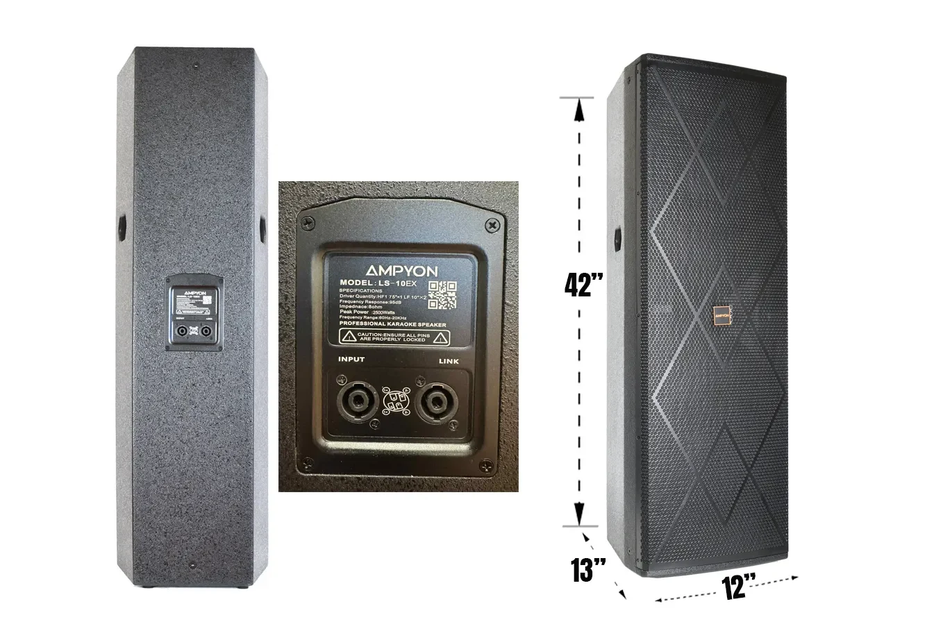 | Speaker Dimensions (Each) | 12"W x 42"H x 13"D |