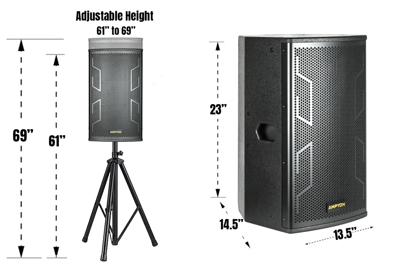 | Speaker Dimensions (Each) | 13.5"W x 23"H x 14.5"D |