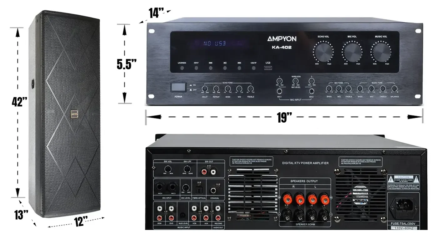 | Amplifier Dimensions | 19"W x 5.5"H x 14"D |