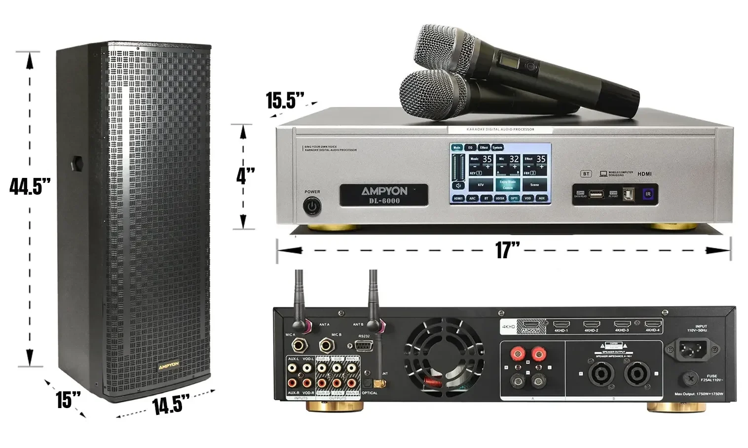 | Amplifier Dimensions | 17"W x 4"H x 15.5"D |