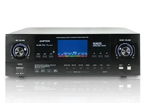 Ampyon HA-620 Digital Mixing Amplifier is a modern karaoke amplifier designed for clear vocals and flexible sound control. It features 3 FBX anti-feedback modes to reduce howling, along with echo, reverb, bass, and treble controls for vocals, and bass, mid, and treble controls for music for precise tuning. The HA-620 supports multiple input options including HDMI, Optical, and Bluetooth, making it easy to connect TVs and media devices. A 4.5-inch LCD display and remote control provide convenient operation, delivering a smooth and user-friendly karaoke experience for home and professional setups.