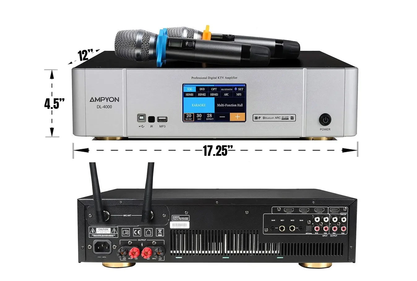 | Trong Hộp Gồm | Amply DL-4000, 2 Micro Không Dây, 1 Remote, 1 Dây Nguồn, 2 Ăng-ten |
