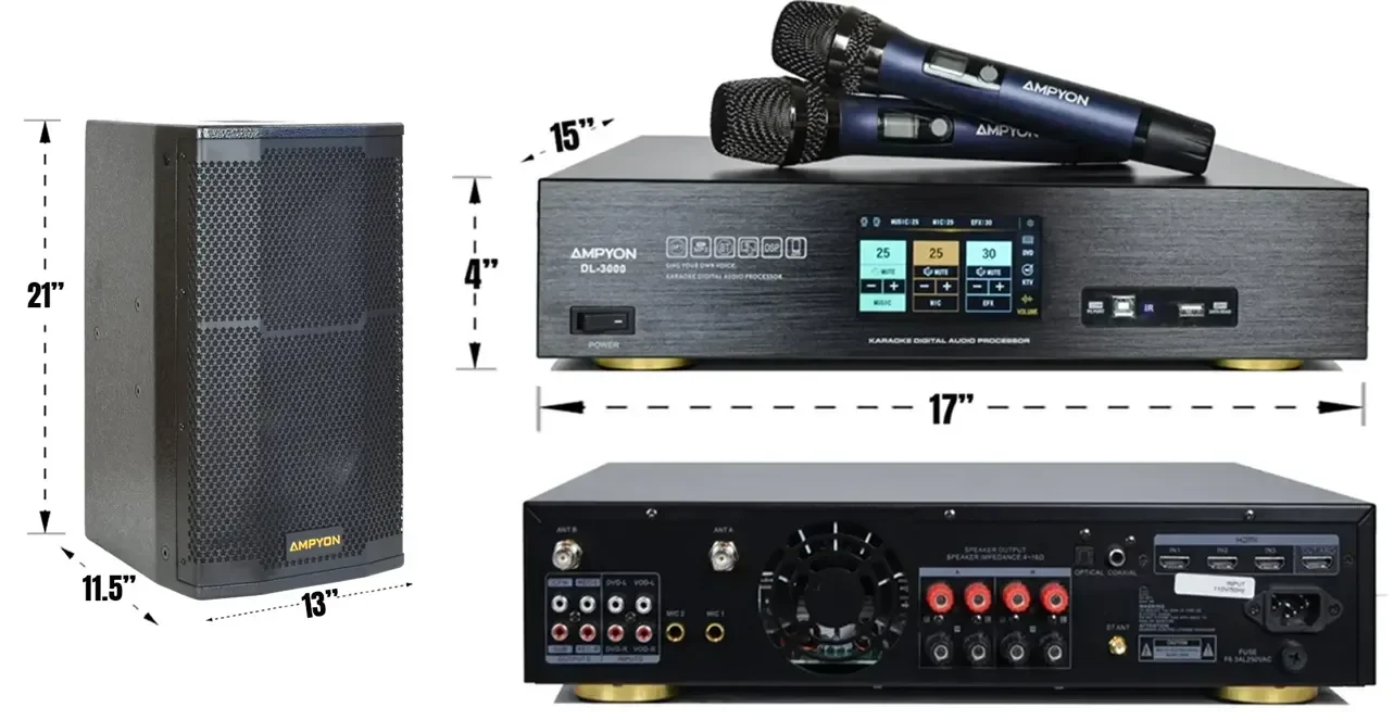 | Kích thước Amply | 17" Rộng x 6.25" Cao x 14.75" Sâu |