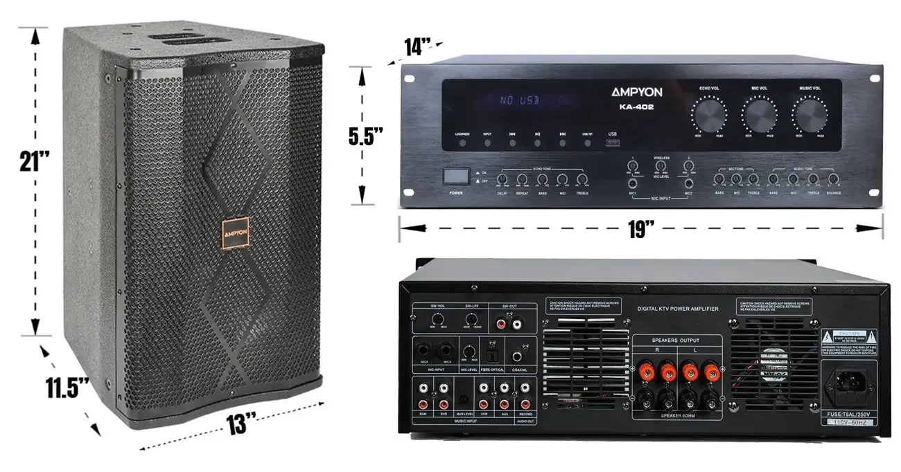 | Kích Thước Amply | 19" (Rộng) x 5" (Cao) x 14" (Sâu) |