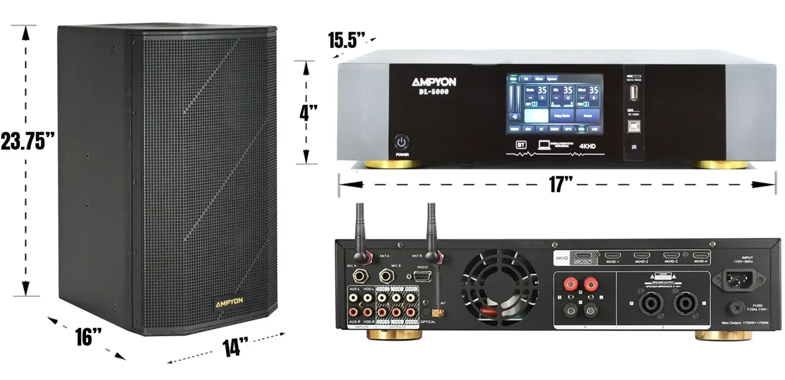 | Kích thước ampli | 17" (rộng) x 4" (cao) x 15.5" (sâu) |