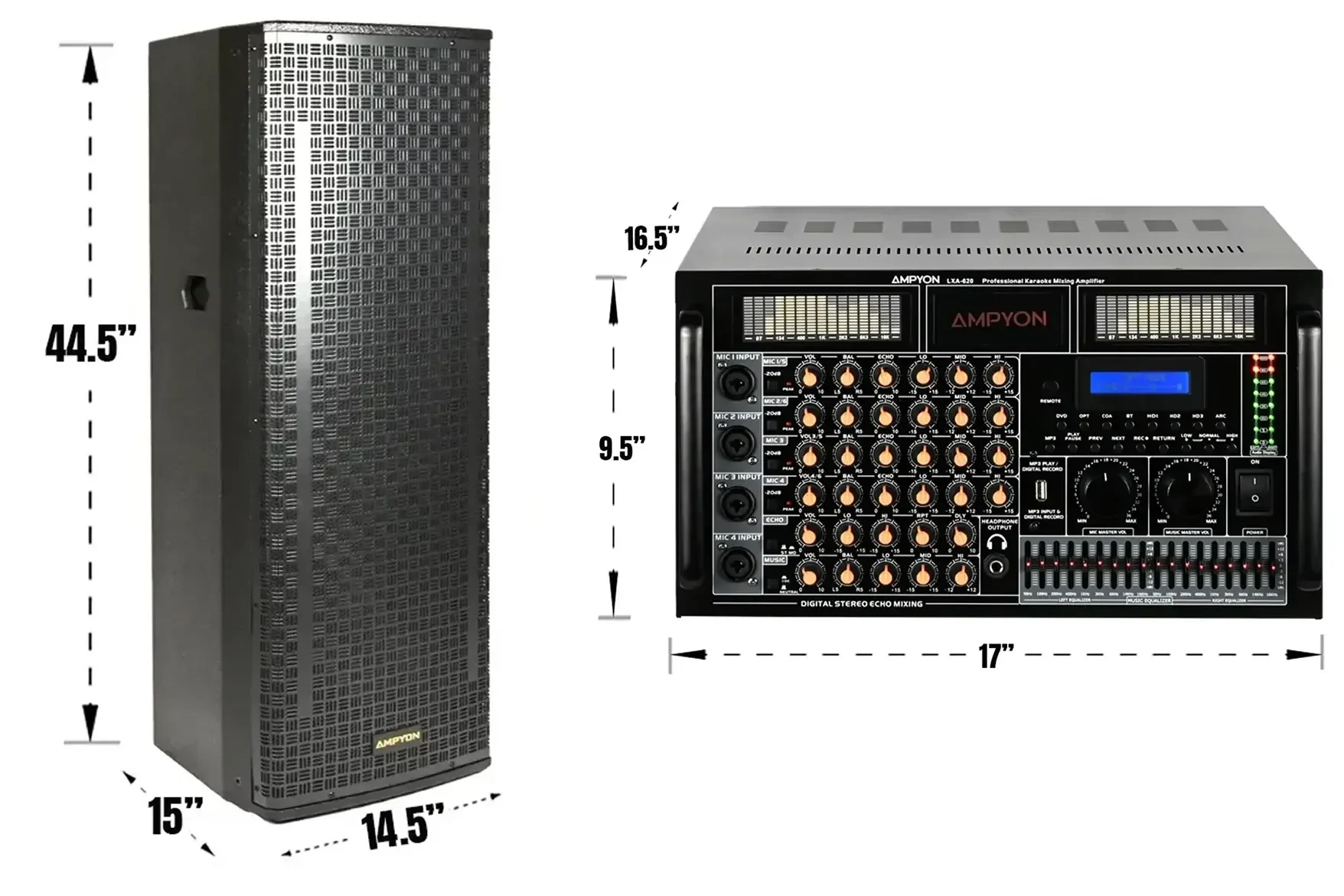 | Kích thước ampli | 17" (rộng) x 9.55" (cao) x 16.5" (sâu) |